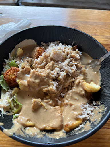 They offer a varied selection of dishes and bowls with your choice of protein: halloumi, tofu, kofta (meatballs), chicken, magali (fried vegetables)… 🍗🍛 and DON’T forget the peanut sauce! It will upgrade your meal by x10000 🥜