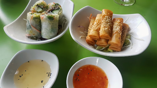 Came to Saigon Green with two friends living in Berlin. I was excited to see why they had been looking forward to it all week. They don't take reservations and when we arrived there were still two tables out front available. For starters, we ordered the autumn rolls and crispy lucky rolls to come before our mains. They were well presented and enough to share between three people. I had the Goi Mien Ga and was expecting a plate of glass noodles with little vegetables, but instead it was like a salad tossed in and was fresh and had good taste, but made the dish lukewarm. If you're wanting a hot dish, as my friend did,...