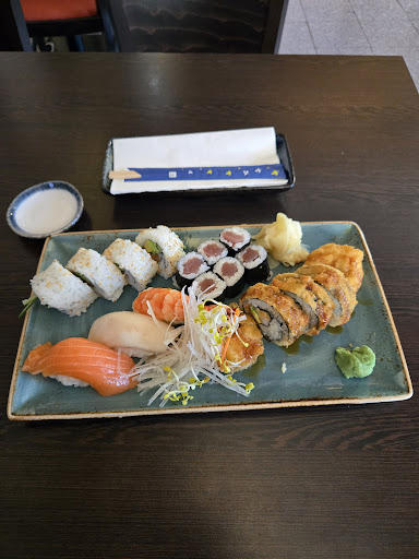 Read moreDie Bedienung war sehr nett und zuvorkommen. Bemängeln muss ich allerdings, dass die Preise sehr unübersichtlich sind. Man weiß nicht genau, was 50% reduziert ist, wann was von der 'Mittagszeit' ausgeschlossen ist. Anschließend haben wir herausgefunden, dass gar nichts wirklich '50% reduziert' ist, sondern dass statt auf der Abbildung ein Sushi, zwei serviert werden. Das finde ich etwas frech, da es ein Standard sein sollte, dass immer zwei Sushi (vor allem für ~4€) statt eines serviert wird und dass damit nicht beworben werden dürfte. Zudem ist der Sushiladen nicht sehr authentisch und serviert neben Sushi nun auch Phõ. Das macht die japanische Aufmachung zunichte. Ich gehe lieber einige Meter weiter zum Rewe bei eathappy. Da gibt es frischen, günstigen und ebenso leckeren Sushi zum mitnehmen!