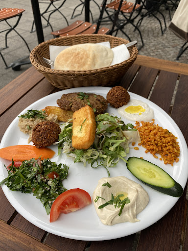 Read moreWe recently visited Salamat during our family/friends trip to Berlin. After visiting the Bradenberg Gate we were on the lookout for the an amazing dinner place. While there were a lot of amazing choices, we were really craving Middle Eastern food . We made reservations as this place gets really busy. We made the 30-minute trek along the Spree River to Salamat. The place had outside seating and inside seating is quite small. We were seated outside on a beautiful evening. After our regular orders of drinks, one item on the menu caught our eye - The Bagdad Plate. This can be used a starter for 4 people or a main course meal for 2. There is also a non-vegetarian meal option but we settled on the Bagdad Plate. It consists of Tabule, Mutabel, Falafel, Hummus, Kartoffein+Makkali(Fried vegetables refined with wild thyme) + Pastille(Puff Pastry rolls filled with sheep's cheese, spinach). The food was so filling and extremely tasty. Every dish seemed like it was made to perfection and with love. As we took a bite off each of the dishes, we had a sense of satisfaction. This is a place to go for vegetarians . You will not be disappointed. Enjoy the beautiful ambience of the restaurant...