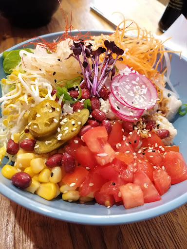 Superb poke bowls, super tasty and healthy, highly flexible and customizable meals. If I were to nitpick I would add some soup or other option for starters/nibbles, and maybe some more tea options.