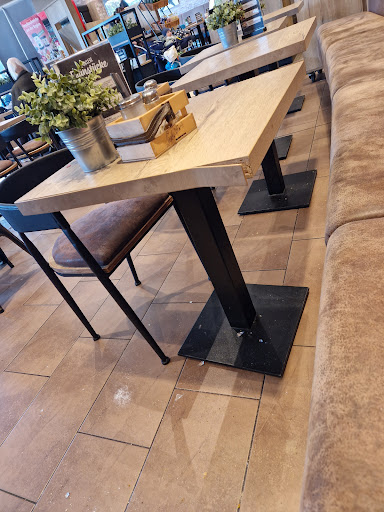Read moreDraußen zu sitzen ist möglich. Wenn auch an der sehr lauten Hauptverkehrsstrasse. Beim Besuch auf komplett durchnässten Sesseln an komplett nassen Tischen. Samstag vormittag kurz nach 11h00 Uhr: Von den vielen Tischen waren nur zwei belegt. Innen: Sehr viele freie Tische. Direkt zum Tresen. Kein anderer Gast vor uns. Eine junge Mitarbeiterin hinter dem Tresen. Sie sah uns. Verdrehte ihre Augen. Ich sah hinter uns: Kein anderer hinter uns. Hmmm. Wir wollten direkt bestellen. Keine Chance. Sie ließ uns warten. Lange warten. Sehr lange warten. Er nannte seine Bestellung. Sie schaute genervt. Spätestens ww jetzt wollte ich hier KEINEN EINZIGEN CENT mehr ausgeben. Ich wollte plötzlich von hier wirklich nichts mehr haben. Das fertige Heissgetränk wurde von der jungen Dame NEBEN dem obersten freien u sauberen Tablet abgestellt. Wir wurden wieder ignoriert. Das "Brötchen" hingegen wurde auf das oberste freie Tablett gestellt. Seufz. Also alles selbst abgeholt. Egal. Wenn man nicht gewinnt, dann kann...