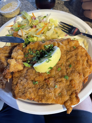 Read moreI was on holiday in Berlin October 2024, we decided we wanted schnitzels, then we spotted this place, truthfully it's easy to walk past, but if you do walk past it, you're missing a brilliant place, look out for the bright pink walls, the atmosphere is great, I do love the graffiti walls inside, the staff have a great attitude, the food, we savoured every mouthful, loved it, so we're back in Berlin again, this time we've made it on our list of priorities to do whilst in Berlin, so we went today, I announced that we've walked all the way from the uk to get schnitzels, again the schnitzels were gorgeous, crispy on the outside, a filling meal, the staff are very friendly, if I lived in Berlin I'd be a regular, but we're returning to Manchester in a few days, but we'll definitely visit next time we're in Berlin. Take care everyone, your food, place & staff...