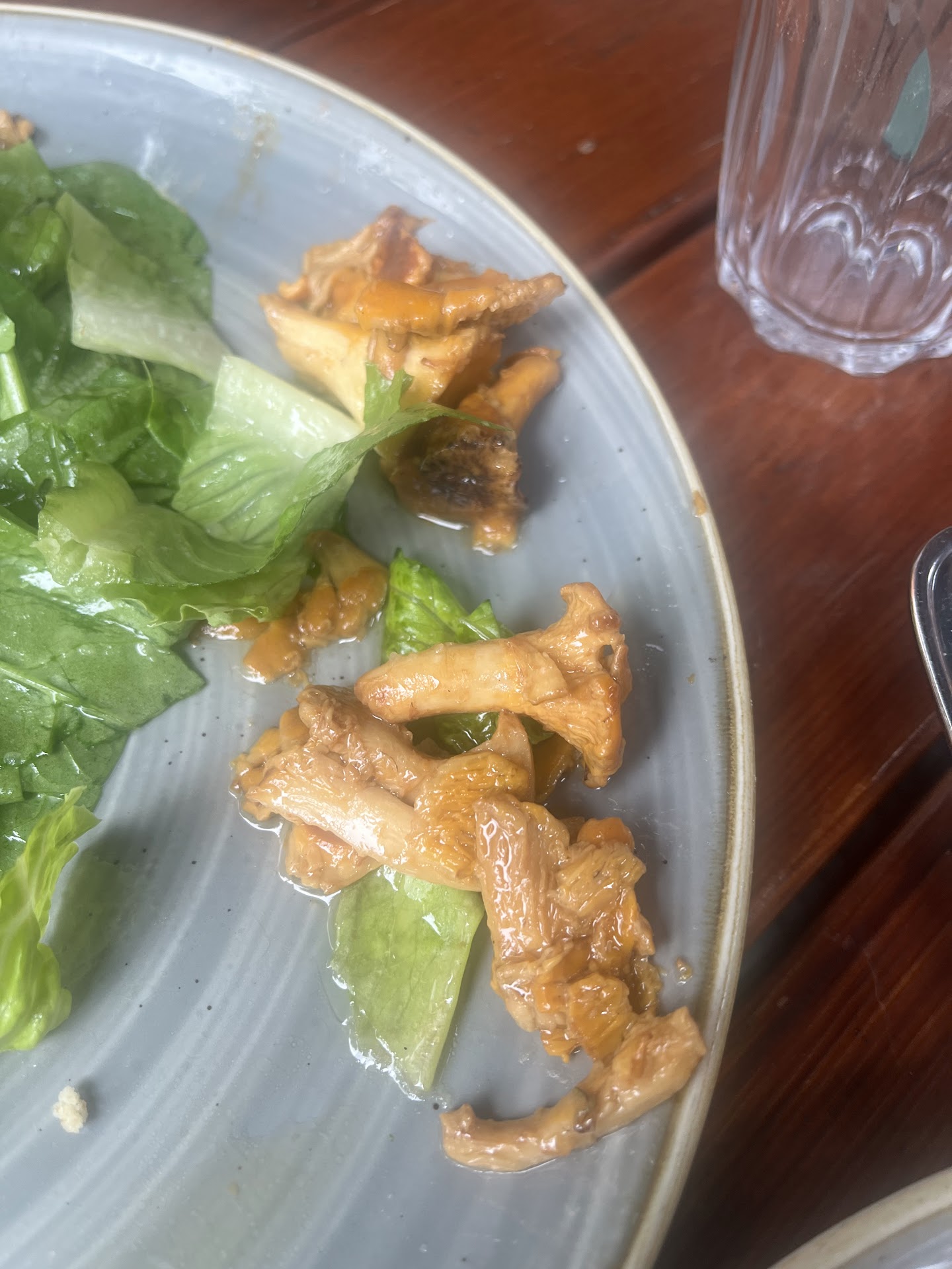 We started with an array of German tapas that set the tone for the meal, each plate showcasing the fine quality ingredients and attention to detail that define this restaurant. The chanterelles salad with chèvre-filled peaches was a standout, a harmonious blend of earthy and sweet flavors that left a lasting impression.