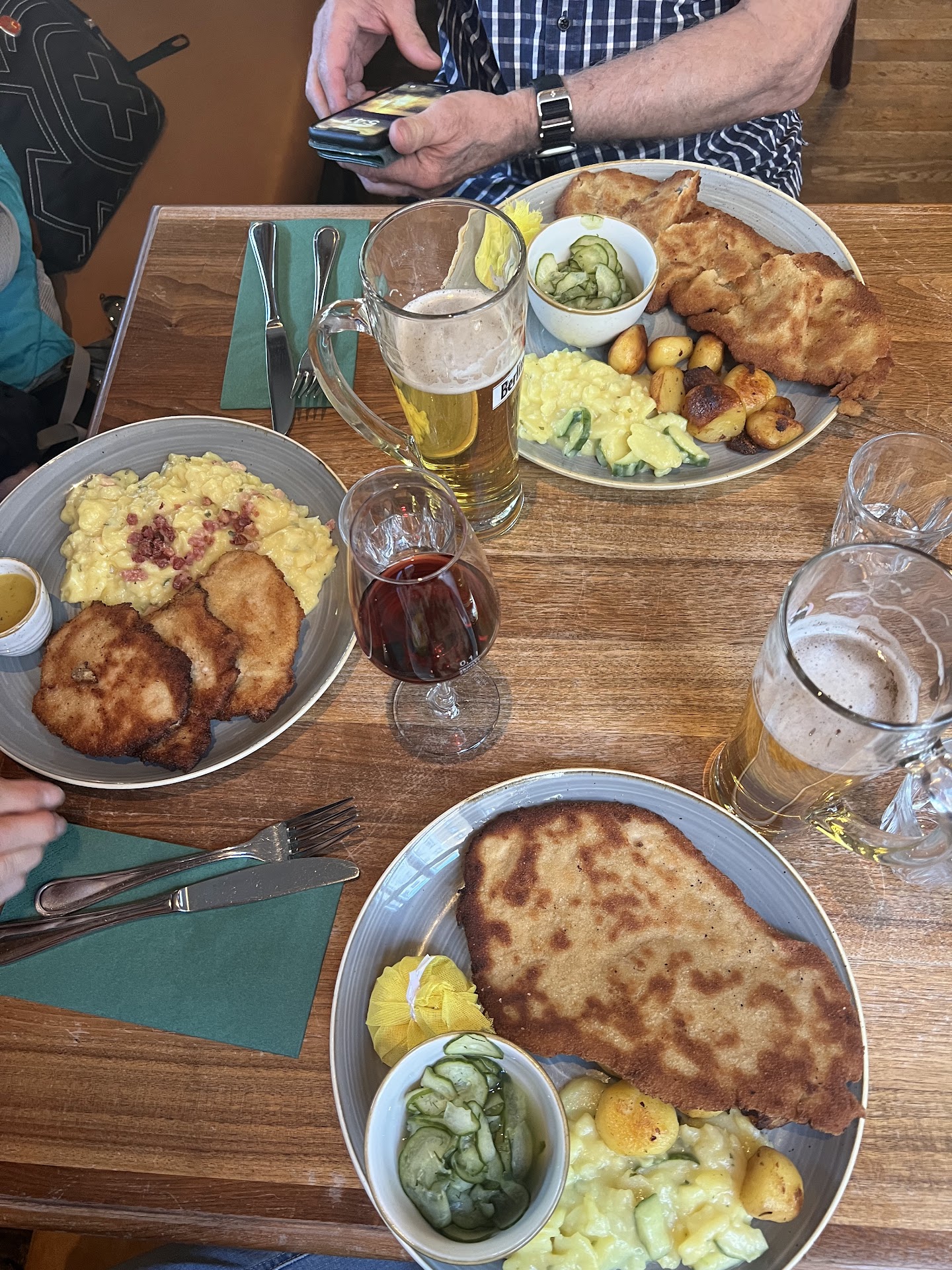 Of course, we came here for the schnitzel, and it did not disappoint. The veal was cooked to absolute perfection, tender and flavorful, paired with an unbelievable potato salad that elevated the dish even further. The portions were generous, the big plates barely contained them—a testament to the hearty, satisfying nature of the food.