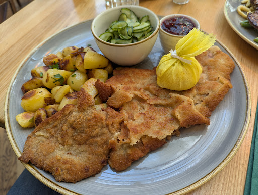 Read moreI had a delicious simple schnitzel. Thin and tender with a delicious breading served with the standard warm potato salad and a cucumber dill salad.I was very happy. It also included a complementery glass of beer or juice. What stood out was the excellent, efficient and very friendly service. A rarety in Berlin. The restaurant and terrace are lovely located next to a very pretty square. Even the plants on the terrace were well looked after. My only critique was that it's a bit pricey. A beer was 6€. And finally, I appreciated a properly sized...
