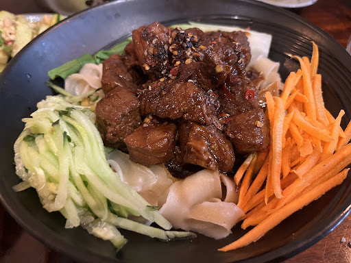 Nestled in the heart of Berlin, this Chinese restaurant offers a cozy retreat for a comforting evening meal with friends. To introduce my favorite dish that I will order each time I visit here: the aroma of the slow-cooked pork stew wafting through the air is an immediate invitation to indulge; Each strand of the hand-shaved noodles carries a robust texture, a testament to the chef's skill, providing a delightful chewiness that pairs perfectly with the tender pork. The addition of crisp, refreshing greens adds a vibrant contrast to the hearty dish, making each bite a delightful balance of flavors and textures. The warm, inviting atmosphere, coupled with the authentic Chinese flavors, makes this a must-visit spot for anyone seeking a...