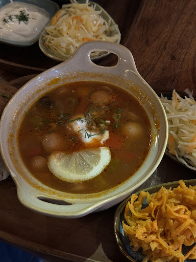 Read moreI'm Ukrainian myself. And I wasn't expecting the dishes to be so great. It's better than many restaurants in Ukraine I know and I'm happy and proud that people of my country represent my home food in such a great way. The atmosphere is great. It is not overcrowded (yet). Ukrainian music is playing but it is not loud nor annoying. I find it adding to the atmosphere even more. The personnel is also very nice, talkative and smiley. It's also suitable for foreigners who wish to order in English, as well as anyone who knows Russian, Ukrainian or German. The prices are great for what was offered. All the dishes come big, so please be careful if you're a fan of "I want to try everything". The place is wonderful. I recommend it with my whole heart! Slava Ukraini! Heroyam...