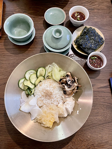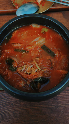 Read morei would give this place 4.5 of 5. :) Still need to explore more dishes. !!!Matcha mochi won my heart!!! i could eat it 24/7. Super soft and delicious! Some drinks can be refilled once again! ⭐ as a main dish i was willing to take Dubu Jorim but they didn't have it that day. So got kimchi as appetizer and after we had "White bibimbap" and something from a special menu like "Tuna kimchi" (which looks like soup on my photos + rice as a side dish to it). My Tuna kimchi was a little straight, i felt just kimchi flavor.. no tuna.. no umami. Very sour :) I love kimchi but I was expecting some balanced bouquet of taste. Talking about tuna, i found only one very little piece(tea spoon size) of that in my bowl . Bibimbap was good. The way they cook rice is just perfect! I'll come again to try something else and update my review ;) Feels like it's very authentic place even though i never...