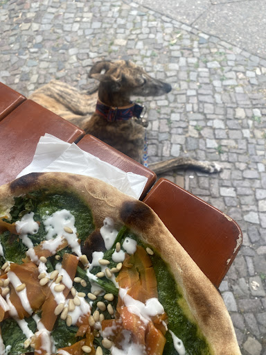 If I were to just rate the pizzas, I would give it a five without a doubt because they are truly very delicious (both the dough and the interesting topings). I also enjoyed that they offer tap water. However, the service and the location were not great. I am happy I was sitting outside and I ate before coming in, because the place and the toilet are, blunty said, simply not clean. The menu is torn and greasy, the toilet, windows, and floors REALLY need a scrub. They did not clean our table before bringing our food....For the sake of the reader, I will not describe the bin next to the toilet. Regarding the service, it was slow, unccordinated, and chaotic. And I live in Berlin, so my expectations when it comes to service are rather low. The waiters were completely disregarding the order of arrival of clients that were waiting (I saw it happen 3 times) and not rearraging the tables properly. We were even accussed of taking someone's spot by one waiter after another waiter sat us at that table and were asked to stand up again. This all would have been solved with better communication and keeping a list of the order of arrivals so all waiters were on the same page, truly a pity. For me the experience has to be just as good as the food, so I doubt I will come again. The prices were rather cheap, I would have willingly paid more if the service had been better and the...