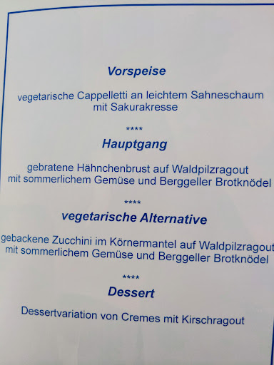 Read moreWir haben mit Freunden an der Aktion"Visit Berlin" teilgenommen, was auch ein spezielles 3-Gänge Abendessen beeinhaltete. Darüber hinaus war inkl. die Toristenkarte ("WelcomeCard Berlin"), ein Doppelzimmer für 2 Personen und Frühstück (2 Pers.) für insgesamt nur 98 €. Das Abendmenü war sehr schön für's Auge hergerichtet (siehe Fotos) und schmeckte wirklich sehr gut. Die Bedienung war nett, auch wenn ein Kellnerkollege uns mitten in der Getränkebestellung einfach den Rücken gekehrt hatte, statt weitere Bestellungen aufzunehmen. Weg war er. Vielleicht war es auch nur ein Mißverständnis.