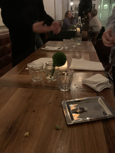 After all the good reviews read for this restaurant, I decided to go with my friends to have a jolly dinner on a Saturday evening. Atmosphere was good, nice decoration and the place was full. Waiter spoke with a french accent that let us to believe that all the read reviews where proven to be true. We ordered a bottle of red wine from Pfalz that, although the price could have competed with a high class Bordeaux, the taste was at the same level of a Balsamico de Modena. For the dinner, we ordered some starters and, as a main dish, each of us ordered a ribeye. Starters came straight away and were ok - goatcheese and some green staff called salad. While we got the starters, we were informed by the same waiter, in a friendly manner, that our main dish was to be delayed by 20-30 minutes due to the busy kitchen. It was understandable in a fullybooked saturday so we took it easy and continued our dinner without any stress. After finishing the cheap bread and the starters we continued with a second bottle of wine with the similar price as the previous one and, for our unfortunate taste, the same low quality. Almost one hour passed by and the other tables which came after us already got their main dishes. We adressed the issue to the waiter who, talking so close to my face that I felt the discomforting spits of his saliva (not very pleasant), said - and this time not in a friendly manner - that he were already told that the ribeyes where to be delayed. We inquired about the remaining waiting time and, after checking with the kitchen, he informed us that no more than 8-10 minutes remained. The 10 minutes passed by and also 20 minutes more until finally our ribeyes came to our table. Of course the waiter didnt apologize for the delay and he instantly left the table. Our 1:30 hours awaited top rewied eyeribs/Entrecote were on the table, luckily cooked as ordered. The taste? absolutely standard - enough to satisfy the hunger of such a long wait but nothing more: a simple piece of Lidl´s meat. Our waiter was ignoring us and, after several calls, we finally managed to order the desserts and coffe to another waiter. Desserts were good in the same fancy manner of fancy restaurants. Although the service didnt match the level of a 65€/pers dinner, we rounded the bill to a quite decent tip - just to leave the place on a gentlemanly manner. At the time of leaving (due to the long waiting there was only one table remaining) none of the waiters used their second chance to apologize for the happening and didnt even say goodbye. Perhaps they knew that we werent going...