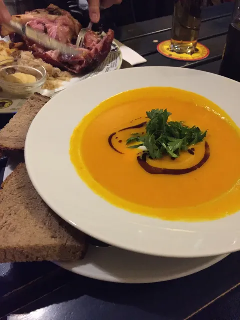 Seated by the window, I perused the extensive menu, filled with quintessential German dishes. Unable to resist, I started with a hearty bowl of potato soup, perfectly seasoned with herbs and served with crusty bread. It was the ideal comfort food for the crisp Berlin evening.