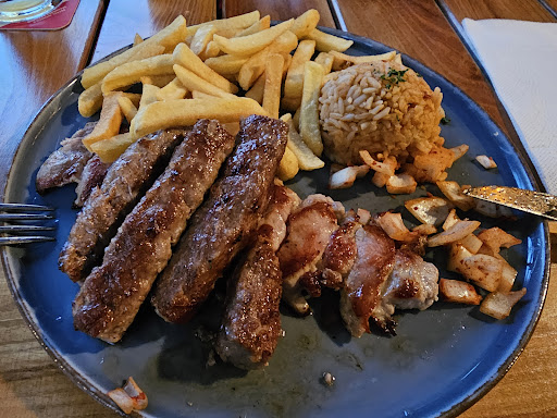 Read moreDas Restaurant gehört zu den sonst nicht mehr üblichen „Jugoslawen“, die es in den 70-er bis 90-er Jahren noch sehr verbreitet gab. Es ist auch die angebotene Küche so geblieben. Die Speisekarte entspricht also einer kleinen Reise in die Vergangenheit. Wie schon damals beim „Jugo“ üblich, ist alles extrem fleischlastig. Ich bin zwar keine Vegetarierin, aber so viel Fleisch möchte ich nicht auf dem Teller haben, das verdirbt mir schon den Appetit. Die Fleischstücke waren gut durchgebraten, was auf der anderen Seite auch heißt, dass sie teilweise schon trocken waren. Gewürztechnisch war alles erstaunlich lasch. Das Ambiente des Restaurants ist sehr schön, der Pächter profitiert von gutem Geschmack in Bezug auf Interieur seines Vorgängers. Im Sommer kann man schön im Biergarten sitzen. Ich bin zweimal dort essen gewesen, ein drittes Mal werde ich es mir gut überlegen. Vielleicht setze ich mich einfach nur mal abends mit Freunden in den Biergarten. Wenn die Küche sich deutlich modernisieren würde, wäre das schön. Im jetzigen Zustand kann ich es nur für Leute empfehlen, die gern viel auf dem Teller haben und Pommes dazu essen. Also mehr Gourmand...