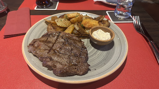 Wir waren heute dort essen, hatten einen Groupon Gutschein für ein 3 Gänge Menü. Als Vorspeise wurden jeweils Chili Con Carne und Gulaschsuppe gewählt. Das Chili hätte gerne etwas mutiger gewürzt sein können, aber dies ist Geschmackssache. Das Gulaschsüppchen war sehr gut, das Fleisch butterzart. Als Hauptspeise gab es Entrecote und ein Hüftsteak zu jew. 250gr. . Die Fleischqualität war hervorragend, zart, saftig und mit dem gewünschten Garpunkt. Die gewählten Beilagen Backkartoffel und Brokkoli waren sehr lecker. Der Brokkoli war frisch, keine TK Ware, sehr gut. Jedoch fehlte mit bei den Beilagen einfach die Auswahl, die dem Rest des Restaurants entsprechend wäre. TK Pommes, Kroketten usw. sind für mich dann einfach ein NO-Go. Diese Produkte sind schnell selbst hergestellt und gerne zahle ich dann auch den ein oder anderen Euro mehr. Oder eben als Alternative auf der Speisekarte.