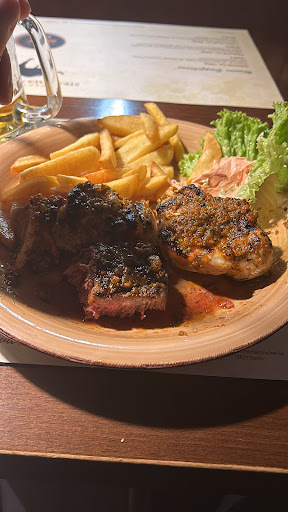 Wir wurden anfangs zügig und freundlich bedient, hatten zwei unterschiedliche Rumpsteakgerichte die auch in Ordnung waren. Fleisch war wie gewünscht und die Beilagen dazu auch okay. Mittelmaß nicht übermäßig gut, auch nicht schlecht. Ich hatte meine Kroketten gegen etwas anderes ersetzen wollen, leider kam mein Gericht trotzdem mit Kroketten (sehr freundlich wurde mir angeboten die Kartoffeln zusätzlich an den Tisch zu bringen was auch geschah, nur dass am Ende die Kroketten mit auf der Abrechnung standen. Obwohl das nicht mein Fehler war, fand ich schon etwas frech) Großes Contra: