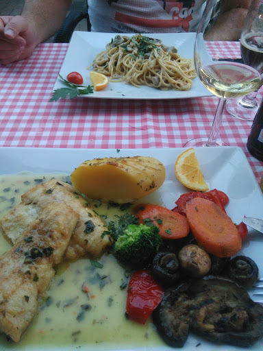 Read moreWir waren heute das erste Mal hier und können bestätigen, dass es sich anbietet wiederzukommen. Ausführlich: im Sommer an einem Dienstag Abend waren außer uns ca.20 Gäste draußen. Schnelligkeit: gab es nichts auszusetzen, nach ca. 10min hatten wir die Vorspeise und nach weiteren ca.10min das Hauptgericht. Rechnung dauerte am längsten, aber nicht schlimm. Preislich: in der Mitte (Antipasti mista 11,9€, spaghetti mit Filetspitzen 7,9€, Zander gebraten 14,50€) Ambiente: die Hauptstraße stört mich nicht, wer in Berlin Lokale an Hauptstraßen nicht mag, hat nicht viel, wo er essen gehen kann. Drinnen wirkt es gemütlich und angenehmen gestaltet. Draußen-Bereich war funktional aber nicht schlecht. Ich fand den Brunnen nett :-) Sauberkeit: war gut. Ich mag Stofftischdecken. Hier haben sie allerdings etwas gelitten. Badezimmer war nicht ganz heil, aber wirkte sauber, das ist mir wichtig. Geschmack: der gemischte Vorspeisenteller und die Bruschetta waren das Beste, finde ich. Zumal der Schinken und die Salami als einziges bei den Vorspeisen gestört haben. (Wirkten nicht hochwertig und schmeckten auch nicht sonderlich). Spaghetti waren gut. Zander war leider mittelmäßig. Er hatte reichlich Gräten, der Zitronenspiegel war leider extrem sauer und der Beilagensalat hatte einige gelbe Blätter, das mag ich leider gar nicht. Dressing war aber toll. Wein war für mich perfekt temperiert. Service: schnell und freundlich. Ein kleines Späßchen fehlte auch nicht, sehr nett.