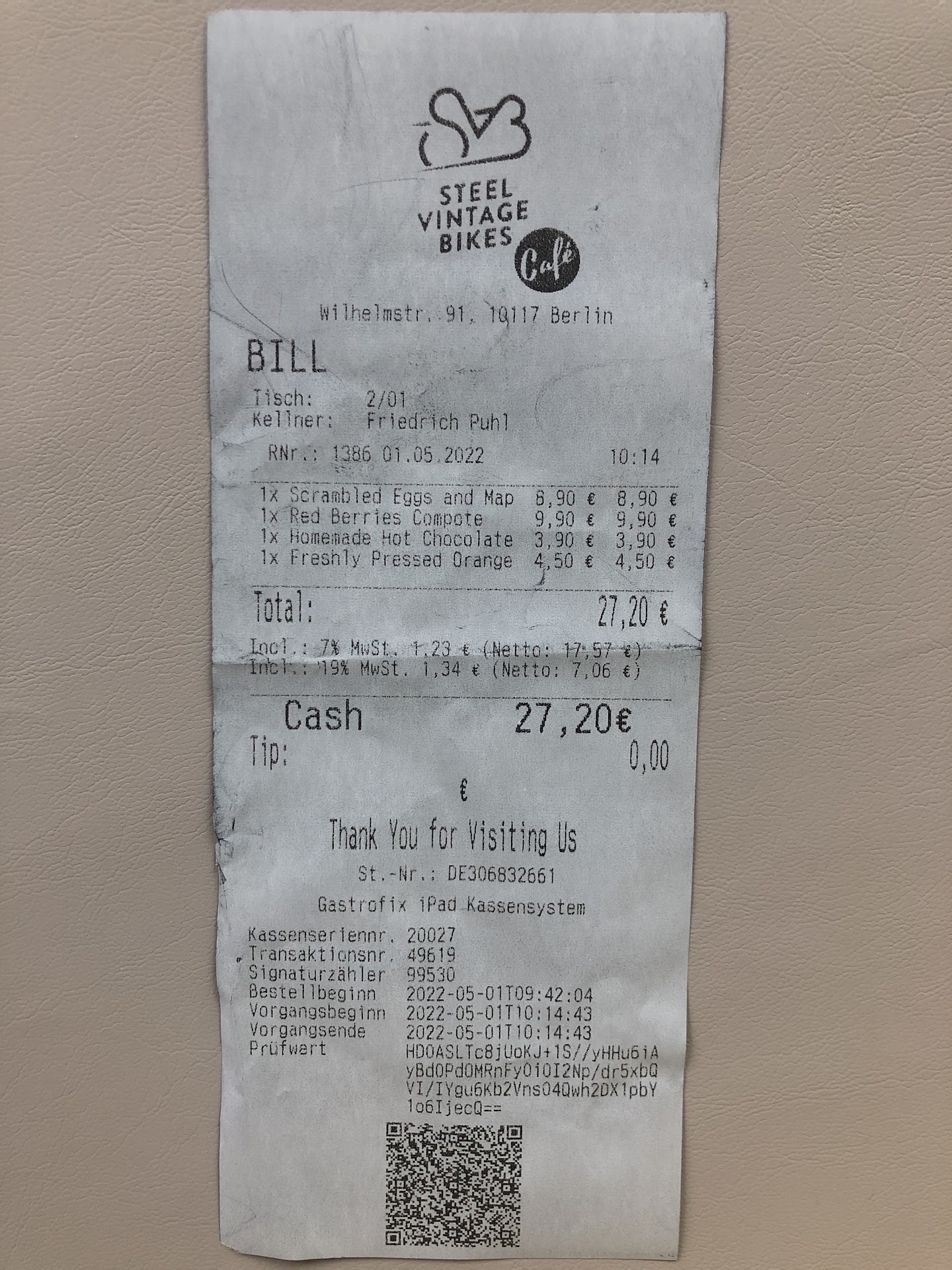 Read moreIt is a cafe where you can have a warm breakfast, and various bicycle items are displayed and the interior was pretty. As soon as I entered, the cafe became the worst for me after being guided to my seat. My family asked for a baby chair because we had a baby for 10 months. I'm sorry, but they told me right away that there was no baby chair. It's sad, but I said okay and I was choosing the menu. Several people came into our back seat. The group had a baby, too, and as soon as they came in, another staff member pulled out the baby's chair. So I asked the staff earlier if they didn't have a baby chair, and he said he didn't know and asked if he was going to order a menu. I was so angry at the staff who didn't give me a baby chair and didn't have manners. When we saw our expressions change, the staff who gave the chair to the customer in the back seat apologized. So you did your job and we told you that we felt bad about having an employee who said we didn't have a chair. After that, the employee who treated us unfairly came back and pressed us whether to order or not, so I wrote down the review like this because I thought I had to eat it to write down the review that was treated unfairly. The food in this restaurant is normal and racist, so don't go. I live in Europe and have traveled to various cities, but this is the first time. It's near the Holocaust Memorial, but it hasn't changed at all since World War II. The employee is wearing different clothes and wearing a bag around his waist. Other than that, the staff is kind and hard-working, but thanks to that staff, it has become a place you...