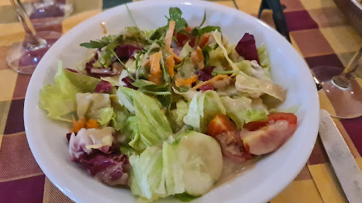 Read moreGute Parkmöglichkeit hinterm Haus, freundlicher Empfang, Coronaregeln eingehalten. Wir waren zu fünft am Dienstag Mittag da. Stühle wackelig, aber Interieur gemütlich italienisch. Vorspeisen und Salat kamen nach ca. 15 Minuten. Salat gute Mischung und viel, Dressing, ansonsten ungewürzt, mit Pfeffer und Salz nachgewürzt. Ich habe alle Speisen gekostet. Kürbissuppe eher zu dünn, hat zuviel nach Brühe geschmeckt, Vorspeisenteller war gut, die helle Soße auf dem Rindfleisch Carpaccio mit Kapern war ein bisschen zu salzig, vermutlich etwas zuviel Anchovis verarbeitet, optisch gut. Hauptspeisen brauchten ca. 30 Minuten. Mein Thunfischsteak wurde leider von viel zu viel salzigen und bitteren Oliven erschlagen, der Tomaten/Kapern/Olivensoße fehlte völlig die Harmonie, ich musste mit nachbestellter Zitrone nachbessern. Das Steak war gut gebraten, aber es schmeckte seltsam wenig, die Konsistenz etwas Puddingartig (aufgetaut?). Knoblauch war in zu großer Menge und Größe beigefügt. Die Bandnudeln gut al dente, auch Olivenlastig. Kalbsleber wurde gelobt, die kleinen Scampi ein Grauen im Geschmack, zäh und ebenso bitter in Knoblauch/Öl auch hier fehlte das Gefühl für Harmonie und Süsse/Säure. Spagetti waren nach dem Geschmack meines Bruders. Lammgulasch in Bandnudeln mit Parmesan attraktiv in Tischnähe zubereitet ok, mir schmeckte auch hier das Gulasch nicht, hatte so einen typischen Kantinengeschmack. Vermutlich sollte man hier nur Pizza essen, die ist riesig, wie am Nebentisch zu...