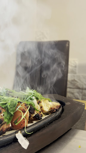 The murg malai tikka: Woah, this came sizzling to our table, and the flavors hit the roof here.