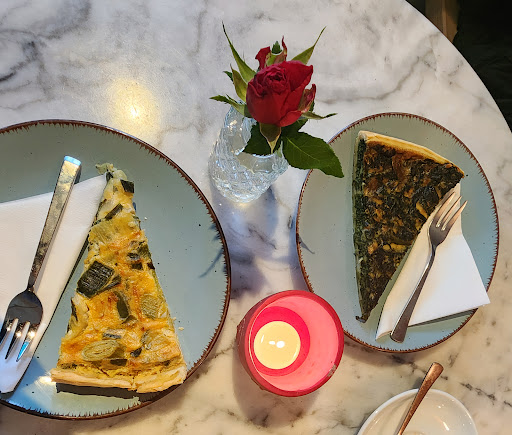 Went there after reading the comments about how tasty the food was. I tried dark chocolate cake, carrot cake , blueberry tart and cherry cake. I would say the carrot cake was the best. Cappuccino was delicious. Staff is under training. Good for summer to sit outside. Inside is a bit gloomy as it is in...