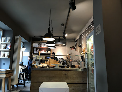 Despite my love to the whole Barn net,this exact point was a disappointment,even if coffee was good quality.Tiny room,stuff is friendly but constantly chatting loudly what is disturbing in absolute absence of music.Only payment by card accepted and also I was asked while paying «are you ok with 5% service adding?» for the first time ever in Barn.Which is not only sound polite enough,but weird to pay before even I took off my coat.Next customer was charged without asking,only informing.Second thing-tables are not laptop-friendly even if they look hella old and tired.Also place is stroller-unfriendly for safety reasons .For such a pricing I would love to know that I will get same quality service in all the net.I really appreciate atmosphere while having my only cup of coffee per week and this was definately a waste of time and money.