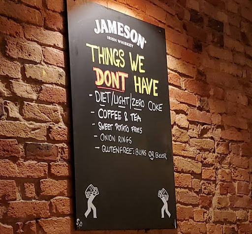 Then, as I was looking at the menu, I noticed that in it they also throw a fit about eating burgers with a knife and fork, how it pisses them off, and how they should be eaten using hands. There's also another rant about how burgers should be ordered not well done because it takes 45 minutes and they basically taste terrible.