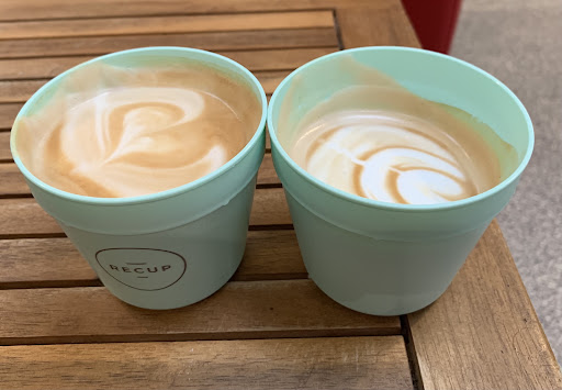 upd. I don’t mind paying extra price for plastic cups to save an environment. But I would prefer to be informed before I made an order. And even though we ordered 2 cups of cappuccino they were made differently. One was with a milk foam( as a regular cappuccino) and the other one didn’t have milk...