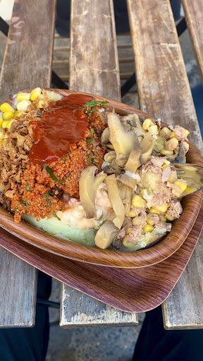 Quirky stop for kumpir, or Turkish-style baked potatoes, served with a selection of fillings.