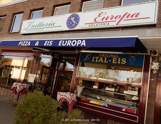 Sehr freundliches Personal, ausreichende Sitzplätze im Vorgarten vorhanden, wenn man schon an einem sehr verregneten Tag dort hingeht sollte man genau überlegen beim draußen sitzen wo man sich hinsetzt, sonst wird das gemütliche zum ungemütlichen, Regen im Rcken, was als sehr ungünstig empfunden wurde, der Uringeruch den die 🐕 an den Pflanztöpfen hinterlassen, Aber zum eigentlichen, ich hatte mir eine Lasange bestellt, war sehr lecker gewesen, kein Lorbeerblatt oder sonstiges drin gewesen, mein gegenüber hatte sich eine Pizza mit großen Garnelen bestellt, die war mal richtig lecker, zwischen den großen lagen noch eine gute Portion kleine Shrimps mit drauf und die Größe der Pizza ist ja mal unschlagbar, auch der Boden; halt Steinofen Alles im allen war das ein gelungener erster EUROPA Besuch gewesen, werden wieder kommen versprochen 5 👍 Ach, im übrigen: Nur Barzahler, nehmen keine Plastikkarten, sollte man auch wissen, weil die Kellner sagen das nicht bei...