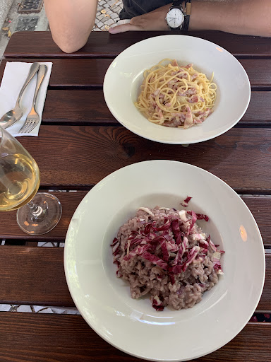 With a carafe of white wine. For dessert the tiramisu & Tartufo al Cioccolato didn't disappoint. When we go for lunch we also love to order the Affogato.