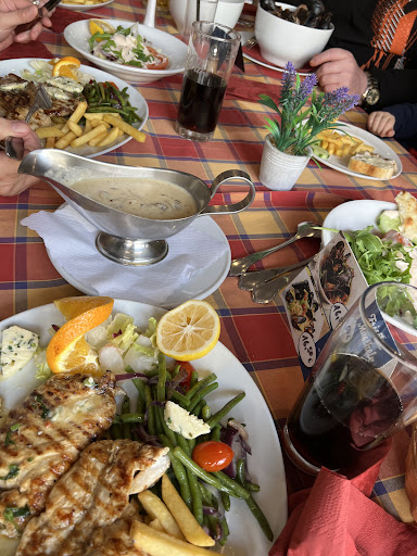 ja viele die es schreiben haben recht, die Toiletten sind nicht schön anzusehen, genau wie der Rest der Einrichtung, optisch definitiv kein Hingucker und wenn eine Freundin nicht unbedingt da hingewollt hätte, wären wir da auch bestimmt nie rein gegangen. Bestellt wurden 4 Gerichte und 1 Vorspeise, der Kinderteller war vor der Vorspeise am Tisch, dann kam 5 Minuten später der nächste Teller und 5 Minuten später die letzten beiden, also völlig planlos. Die Bedienungen ( hochschwanger und die andere ein bissl sehr alt) waren hoffentlich nur Aushilfen, sonst könnte ik mir nicht andere Rezessionen erklären. Anstatt Kroketten habe ich Pommes bekommen, auf meinen Teller waren noch Bohnen, die nicht auf der karte standen oder erwähnt worden sind von der Bedienung und den Salat den es zum Essen eigentlich geben sollte, den habe ich nicht bekommen, ein Getränk wurde kurz vorm gehen bestellt und nach 10 Minuten nicht gebracht. Nun aber zum Essen, das erklärt die 3 Sterne. Das Essen war sehr lecker und auch nicht gerade wenig. Wenn man nicht all zuviele Ansprüche an ein Restaurant hat, kann man hier auch...