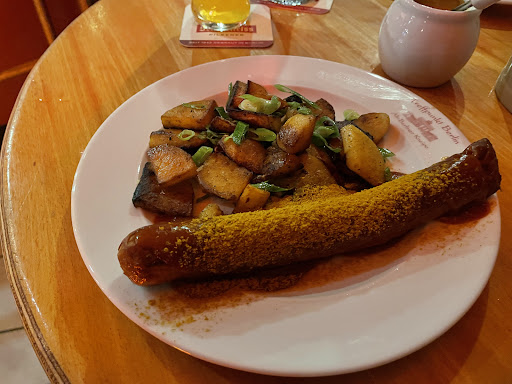 Read moreWe loved this pub! It is only a few blocks from Friedichctrasse station ( google maps will lead you right there.) It was very busy at dinner time and much less busy at lunch time. At dinner time we ended up sitting at the bar as the place was full and busy. The staff are all great at English and there is even an English ,menu available. As well an allergy menu in English. I am a celiac, so have to eat gluten free. This was not a problem there. My husbands favourite meal was the currywurst which is gluten free too. My favorite was the vegie burger. This is nothing like North American Vegie burgers. I dream of this meal! It is a potato pancake with cream cheese and vegies and covered by another potato pancake then drizzled with this amazing berry/tomato vinaigrette and comes with salad and candied cherry tomatoes! All gluten freeYUMMM The prices are also...