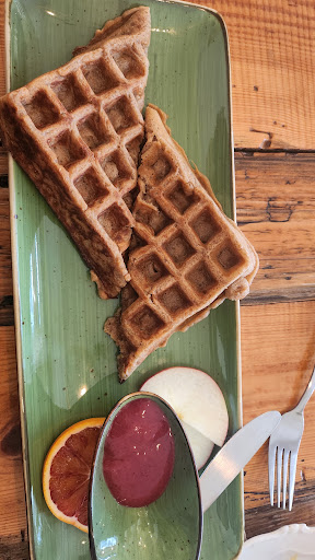 While I think there's a good reason for vegan health conscious cafés like this, the food in terms of presentation, decor and quantity was disappointing. The good ratings probably comes from the strong concept which I enjoyed too. Yoghurt with fresh fruits came in sauce cup with two slices of tiny apple and oranges. Waffled came in sad two slices. There's a lot to be improved. Paid 18...