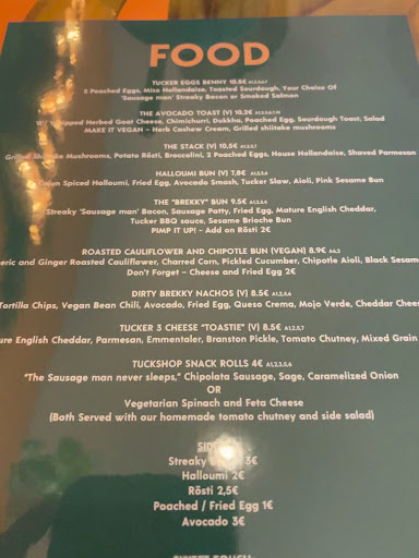 Read moreTucker Brunch Bar is nicely decorated place with good food and good coffee and is also an accurate representation of a typical anglosaxon neoliberal gentrification of Fhain. You will want to have a meaningful conversation with your cute bun in expressive colours until someone tells you how to start eating it, but another misunderstanding of the concept of background ambient music mocks all your attempts of listening to your own inner voice. I am not sure if the people shouting at each other is a result or a reason of the high decibels that swallow the entire scene like a black hole. Either way, it subtly completes the illusion of having a brunch in Austin TX or wherever. But i like those cute little water glasses. All in all, good food, good coffee. If you have the patience of tolerating other fleshy living organisms that continuously need aural stimulation to escape their inner discontent, sharing the same space as you, definitely...
