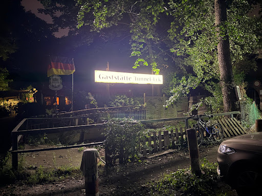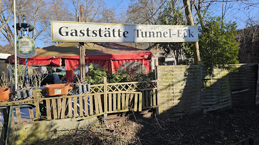 Als wir bei Sonnenschein zu zweit vorbeikamen und jeder ein Bier tranken, war es urig. Der Weg vom Park Schloss Charlottenburg zur Gaststätte ist nicht einfach zu finden, Graffitis links und rechts, ein bisschen schmuddelig an der Brücke, dann steht man plötzlich vor der Schleuse, abgezäunt und in Bau. Noch ein Stück weiter an der Bahn entlang, dann links halten. Schilder sind mit Graffiti unlösbar gemacht, dann links ab mit allem Mut in den dunklen Tunnel, einen Moment ist man im Dunkeln allein, dann öffnet sich die Überraschung: das Tunneleck. Es gab sicher mal bessere Zeiten, ob es dort jetzt noch Essen gibt, außer für die Familie, könnten wir nicht klären. Das Bier wurde UBS gebracht, und, wer gerade da war, hat hinterher das Geld entgegen genommen. Es gibt Stühle mit Tischen im Freien, nachmittags in der Sonne, an dem Wasserbecken mit Wasserstrahl und ganz vielen Fischen. Der Innenraum ganz gemütlich, die Toilette eng, aber sauber. Überall herrscht das Chaos - ein bisschen. Ordentlich ist was Anderes, aber genau das macht diesen Ort so urig. Ich komme hier gern vorbei, zumal sich dahinter durch Schrebergärten hindurch ein schöner Weg bis zum Spandauer Damm befindet. Man muss diesen Ort entdecken, zwischen den Eisenbahnen versteckt. Einfach Klasse! Nächsten Sommer nutzen wir den Garten auf Bestellung und machen eine Grillparty. 36 Pakete Grillkohle...