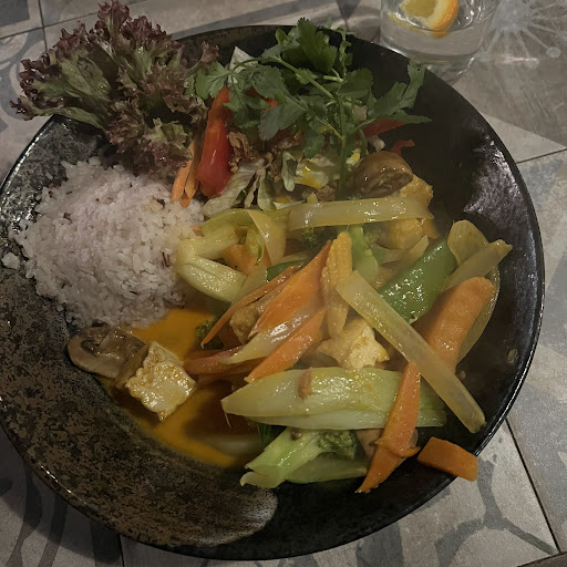Amazing!! Everything was just perfect. Service is quite fast, the prices are okay and the food is simply divine. We've been sitting underneath an apricot-tree, listening to beautiful livemusic while enjoying delicious food. Our highlight was the Jackfruit-stir-fry. It was refreshing and hearty at the same time. The menu is big, but not too big and all the dishes are special - making you want to try everything (They offer a variety of tapas if you want to try different things). Unfortunately the outdoorseats are a bit uncomfortable (wooden and very low) but prices are good and everything else was perfect. When you're posting a picture from your food /the restaurant on your Instagram you're getting 10% off - a nice idea. We're definitely...