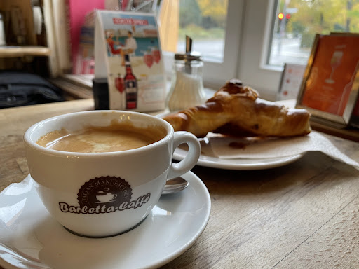 That would actually describe it quite well. There it is, on of the best coffee shops in the hood. You sit on the sunny side of life, there are Italian ciabatta and tramezzini, and all the cool stuff from Italy, like delicious cakes, delicious breakfasts, the scrambled eggs - and it is prepared freshly. The place is super comfortable, inside as well as outside.