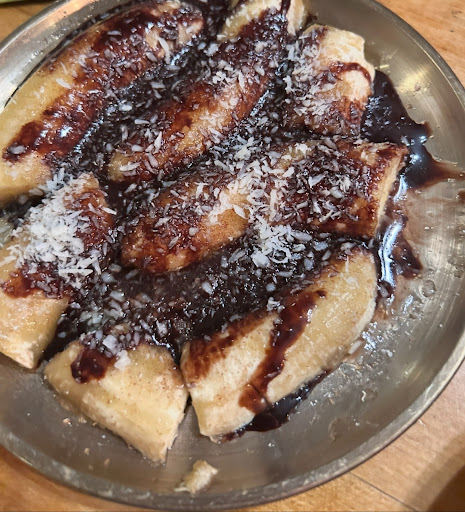Dessert sealed the deal: banana drowned in chocolate syrup and sprinkled with coconut. If you asked a five-year-old to design a “Brazilian dessert,” this is probably what they’d come up with.