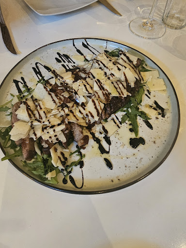 The appetizer admittedly had some unique cheeses but mainly local cheese and meat you would get at your local Rewe. The wine, wow the wine, was ridiculously overpriced and only “after the fact of serving it” by a factor of 10x, maybe more. I have had less expensive Amorone,Barolo, Bordeaux, Margaux, .... wines in Venezia, Paris, ... which are some of the most expensive places in the world, and at top restaurants, that were mouth dropping then what I had here by a factor of at least 3x, and yet cost at least 2x less. Absolutely ridiculous and frankly a rip off! I ordered 35 euro wine and they gave me a 110 euro wine because they other one was not available without notifying me of the MASSIVE price difference.. and frankly it was not even that great.