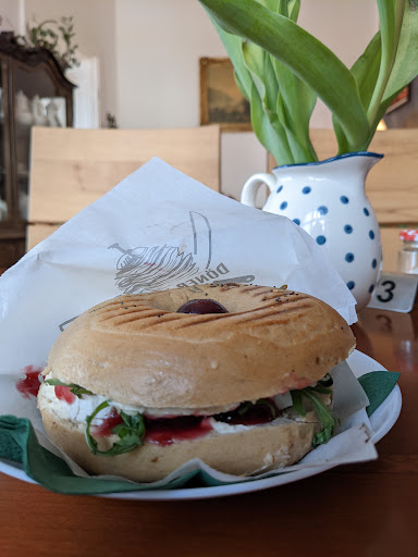 A cafe which you would probably call typical berlin. It's a Pewtty big seating area i aide and a few seats outside as well. All mixed up very old seat ware and tables, which I could also find at my grandparents. You order at the counter and get your order delivered to the table afterward. It's a pet friendly place, and they even sell dog treats. People at the counter seemed to be very stressed, and they were inly discussing when they could finally leave. Although as a big benefit, they were open longer than their opening times stated. They have a big selection of different bagles and usually at least 3 cakes which are all very good. Overall, it's not my kind of cafe, but it fits perfectly to...
