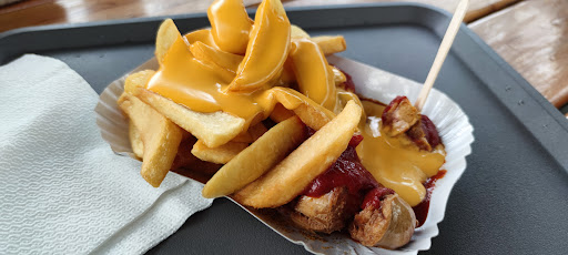 Das Essen: Bisher war es jedes Mal gut. Nicht okay, nicht durchschnittlich, aber auch nicht exorbitant gut. Einfach gut halt. Pommes kross und gut gesalzen, die Currywurst je nach Schärfegrad einfach, pikant oder gut scharf. Die Schmorzwiebeln und der Schaschlikspieß, die ein Freund einmal probierte, waren laut seinen Aussagen auch lecker. Meine Empfehlung: Pommes mit Knobi-Mayo! Dazu eine Currywurst. Das ist echt lecker.