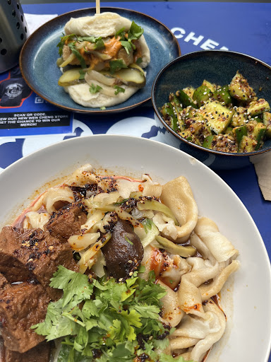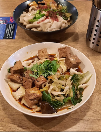 Read moreAfter a very long time my partner and I finally managed to come here and we both thought it’s over hyped. I ordered the Biang Biang Beef which was a mistake on my end. I should’ve ordered something vegetarian. Why? Because it is big chunks of beef. I thought it’d be topped with ground and minced beef. So my bad, my mistake! I just don’t like these chunks at all even though they were very soft and juicy. Now the hand pulled noodles … In my opinion or for my taste they are too thick which led to quite doughy parts and a general inconsistency in taste. I had one noodle that was yummy at first and thick and doughy and not so tasty at different parts. Though the sauce was an absolute banger! It was oily and a little spicy and somehow it even had a subtle tone of sweetness to it. It was one of the best composition I had so far! Here I thought it’s gonna be a spicy sauce but I should’ve asked for some more spice—you have the option and definitely should make use of it if you like it spicy. (I eat very spicy in general and what isn’t spicy for me at all or just a little can actually be quite spicy for my partner or friends. So don’t listen to me when I say it’s not spicy!) The food came to the table in record time. I can only guess that there is bowls of pasta prepped and ready to be filled with sauce and whatever toppings you order and then being served. It tasted very fresh and I have no reason to believe the prepped food sits for too long before being served.