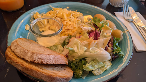 We ordered different things. But the cappuccino was already cold. Some got two slices of bread with their eggs and another one only got one slice, which is a bit odd.