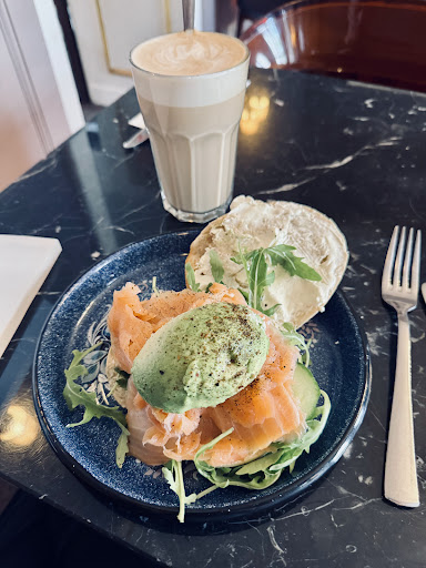 I thought the whole interior was a bit too forced. The places looked too royal on the inside with fancy dining lights (for a breakfast/brunch place) and royal green walls but they had an open kitchen and the menu card was a laminated sheet. It just didn't sit well with the overall theme to be honest and this is also what I mean by forced. And the service was too slow. As I was sitting facing the kitchen I could see that the slow service was because of their small kitchen with two stoves which can be manned by only one person. So there was just this one lady trying to cook/re-heat (their pancakes are premade and they just heat it up for the order) everyone's orders. Hence the food is always late but the drinks come in quickly. It was a bit disorganized in that regard. It wasn't a very busy day yet the waitress were running around like they had hot water on their legs. It was difficult to get their attention to ask for extras/place additional orders. After a long wait, my friend and I got our breakfast. We had ordered the scrambled eggs pure and veggie bagels. Both very average. The scrambled eggs were overdone. It wasn't creamy and soft like breakfast eggs. The salad was too bitter and there wasn't enough salad dressing to dumb down the bitterness and of course we couldn't ask for extras dressing because, well, we just couldn't get the attention of the waitresses, nor did they bother to stop by to see if everything was ok. There were three potatoes with peels on the plate which is a reflection of their effort into making the menu. And just like their interiors their food was a bad mix and match of flavors. Wouldn't really recommend this place for anything other than drinks and smoothies. But in case you still want to go, do take cash with you. They don't accept cards. There are enough signs around the restaurant pointing...