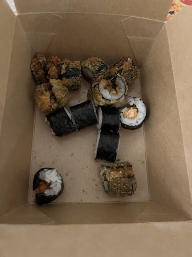 The ingredients are not fresh, and you'll likely receive the least desirable parts. The rolls often resemble a poorly made Poke Bowl, falling apart with ingredients scattered throughout the container.