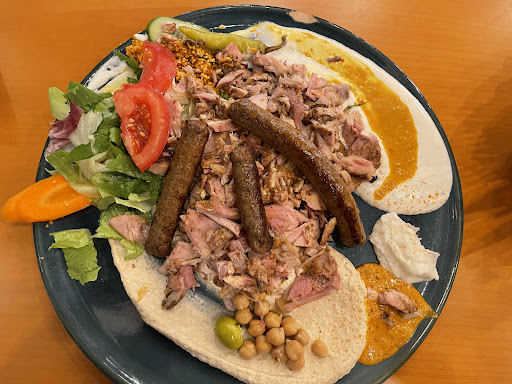 Read moreFood is fresh and tasty. Too bad the portions are so small. In a vegetarian mix plate you get falafel, hallumi, magalai, salat, tabouleh, spreads and kuskus - yet only a small taste of each. 1 piece falafel, 1 piece hallumi. How should this be fulfilling for someone paying 8,9 euros- to get a very decorated large plate(as if its a gourmet fine dining restaurant..) in an Arabien imbis, a kitchen which is known for its generous portions, when thr plate is nearly half full? Onw couls scrape everything they put on the plate to one wide of it and it will neaely be half full. Dont come with...