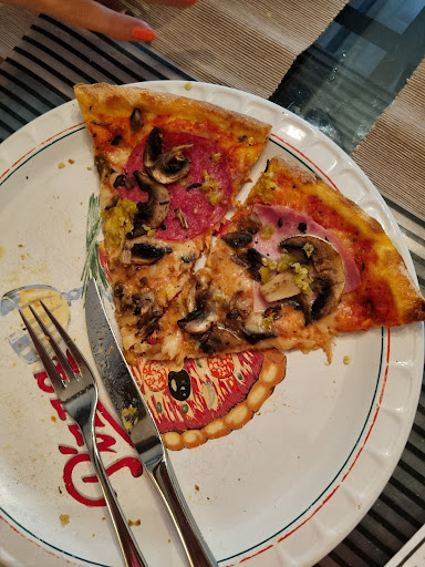 Wir haben sage und schreibe fast 1 Stunde auf unsere Pizzen gewartet. Die Kellnerin brachte sie uns mit der Aussage, bei unserer Bestellung sei etwas schief gelaufen. Ich habe bemerkt, dass ich falschen Belag auf meiner Pizza habe und bat um eine Karte, um mich zu vergewissern, was auf meine Pizza hätte kommen müssen. Ich habe es der Kellnerin gesagt, sie bot mir eine neue Pizza an. Ich lehnte ab, da wir eh schon lange auf unser Essen gewartet hatten.