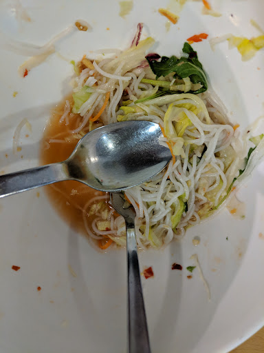 Canteen-style operation with outdoor seating offering noodle soup & other Asian standards.