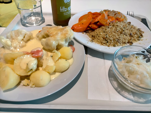 I visited a few days ago in the morning in between breakfast and lunch. The sign said they serve breakfast until 10:00 then lunch at 11:00. It was open, but with dishes covered and no one in line I wasn't sure if they were serving food. I asked the lady behind the counter if they were open and she replied with an attitude "WHAT kind of question is thaaaaat?" And a snide "The door is open, isn't it???". Seriously? It's the kind of question management teaches their staff's response to be: "Welcome, this is your first visit, yes? Yes, we're currently still serving breakfast for X amount of minutes and then lunch at X time". Not - giving your customers who are new to the place an arrogant, demeaning attitude and treating them like crap. Luckily, the other staff lady was friendlier and I got a quick, hearty breakfast. If you're a tourist and would like some local attitude - I highly recommend this place where you'll get a serving of "Berliner Schnauze" with your meal. Food was good, selection limited, but ok, and it's cheap and light, airy place with plenty of seating - but the service I'll take without the nasty attitude & probably won't be back. To management: the employee with the mouth wasn't handicapped/disabled, she was simply...